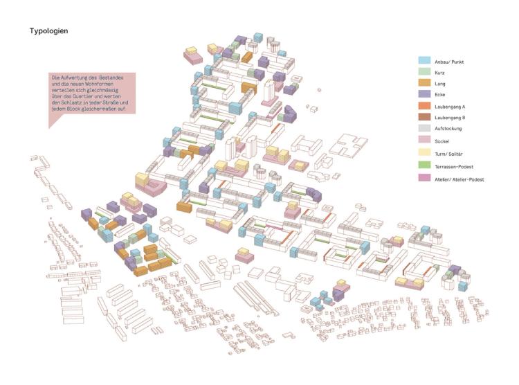 Das Prinzip des Weiterbauens ermöglichte eine phasenweise Transformation durch Rückbau, Ergänzungen und flexible Typologien für Neubau und Bestand. Ein zusammenhängendes Freiraumgerüst band angrenzende Landschaftsräume in das Quartier ein und schuf eine langfristige, sozial verträgliche Entwicklungsperspektive.