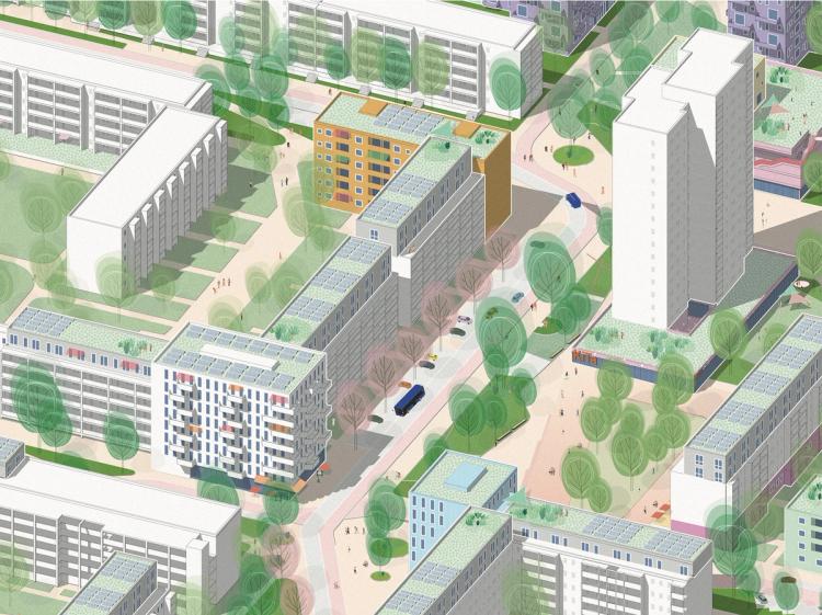 Das Konzept Schlaatz Weiterbauen formulierte eine behutsame Stadtreparatur für den Stadtteil Schlaatz. Ziel war es, Stadt und Landschaft stärker miteinander zu verzahnen und den Schlaatz als klimaaktives, sozial durchmischtes Quartier schrittweise weiterzuentwickeln.